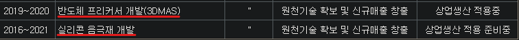 개인적으로 한솔케미칼의 연구실적과 연구계획을 보면 동사의 현 상황과 미래 비전이 보인다고 생각을 하는데요. 같이 몇 개만 살펴볼까요.