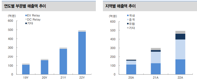 EV Relay가 주력이고 DC Relay가 보조사업 > 중국 수출비중이 가장 큰 차지. 북미향 매출이 없다는 것은 아쉬운 점.