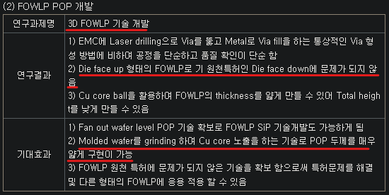 · Fan-out WLCSP 기술 원천특허 피해갈 수 있는 3D FO WLCSP 기술 개발