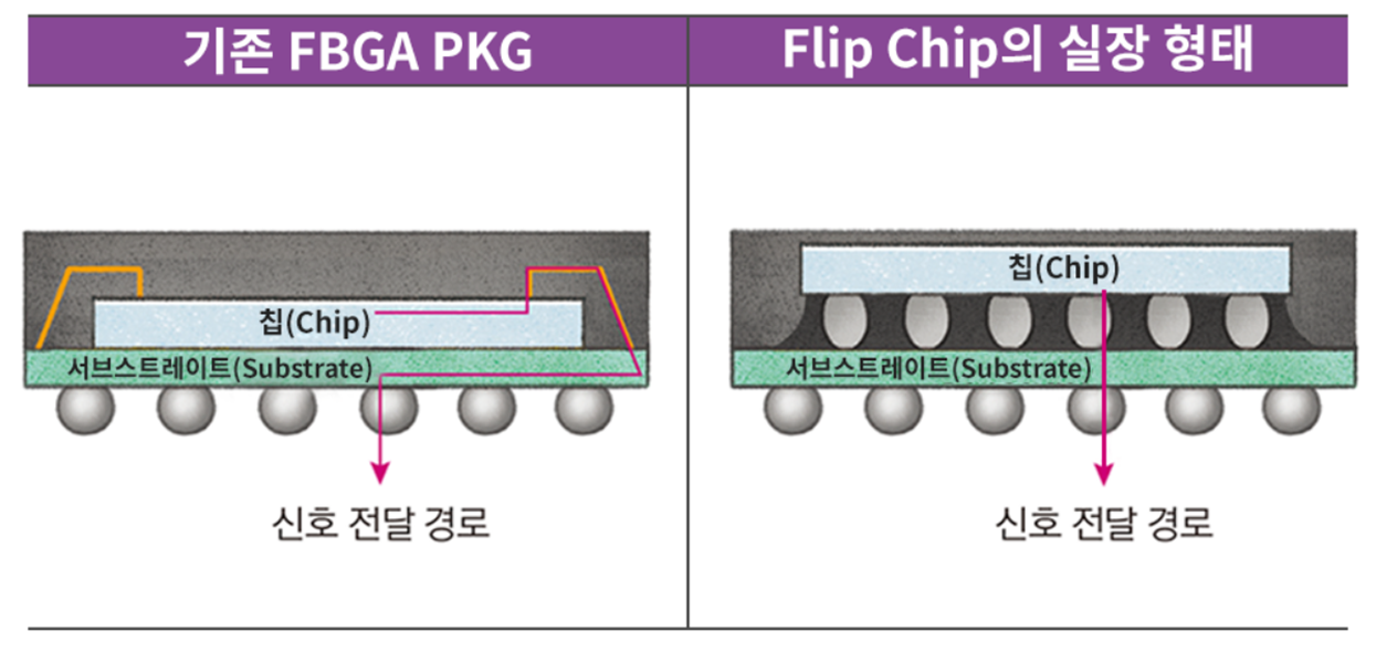 SFA반도체는 후공정업체로 반도체칩을 패키징을 하는데요. 패키징이라고 하면, 전공정에서 만든 웨이퍼 위 칩들에게 옷을 입혀주고(Substrate와 연결) 외부와 전기적 신호를 위해 기판(PCB)과 접촉시키는 것을 말해요. 특히, 예전에는 반도체칩을 와이어본딩(Wire Bonding) 방식으로 기판에 연결했다면, 요즘에는 Bumping으로 연결하여 더 빠른 신호, 강력한 신호들을 가능케하고 있어요.