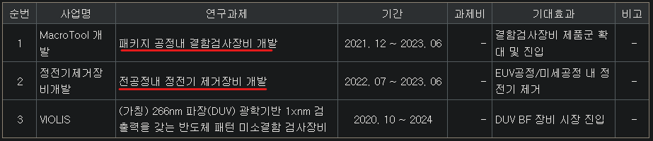 동사의 R&D 계획을 보겠습니다. 동사는 전공정 웨이퍼 상태를 체크는 광학검사장비를 납품하는 업체이죠. 다만, 전공정의 패터닝 미세화 한계로 후공정의 중요성이 커지고 있는데요. 후공정을 이제는 Advanced Packaging이라고 할 정도이죠. 그래서, 넥스틴은 후공정 관련 검사장비개발에 투자하고 있는 것을 확인할 수 있어요.