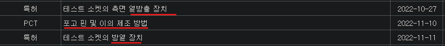 테스트소켓은 주로 전기적 테스트를 진행하죠. 전기는 열을 발생시키기 때문에 소켓의 온도를 높이는데요. 그러면, 테스트소켓의 성능이 저하될 수 있습니다. 온도가 급격히 상승하는 것을 방지하기 위해 소켓 측면부로 열을 방출하는 특허를 냈어요. 또한, 포고핀(Pogo Pin)이라고 나와있는데요. 다른 말로는 스프링핀이라고도 불러요. 테스트소켓에는 전기적 테스트를 진행하기 위해 수 많은 핀들이 꽂혀있는데요. 포고핀은 이를 의미해요.