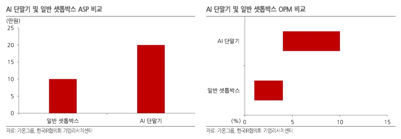 AI단말기 vs. 셋톱박스 마진 비교 : 동사는 점차 KT향으로 AI 셋톱박스 납품 증가 중