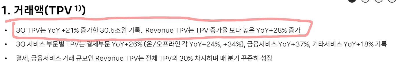 카카오페이는 2분기부터 실제 매출액에 기여하는 TPV를 공개했다. 이를 Revenue TPV라고 합니다. 우선, TPV는 Total Payment Volume으로 카카오페이를 통해 총 이뤄진 거래액을 뜻해요. 이 중 송금, 결제, 금융 등에서 실제 카카오페이가 수익화한 영역만 간추려낸 것이죠. 투자자들이 카카오페이의 실제 매출액 성장을 알 수 있어서 카카오페이가 보라고 2분기부터 내놨습니다. 그도 그럴 것이 공개를 하면서 Revenue TPV 성장률을 함께 제시했어요.