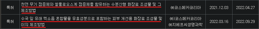 개인적으로 코스메카코리아의 연구실적과 연구계획을 보면 동사의 현 상황과 미래 비전이 보인다고 생각을 하는데요. 같이 몇 개만 살펴볼까요.