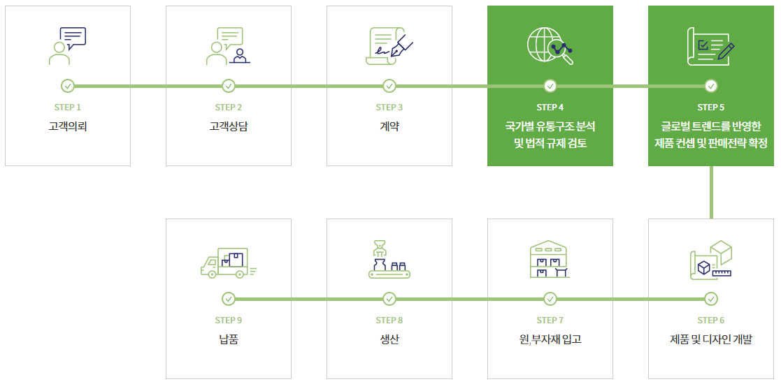 * OGM(Original Global standard & Good Manufacturing) : 전 세계적인 판매 다각화 > 판매국가의 트랜드, 법적규제, 유통구조 솔루션 제공