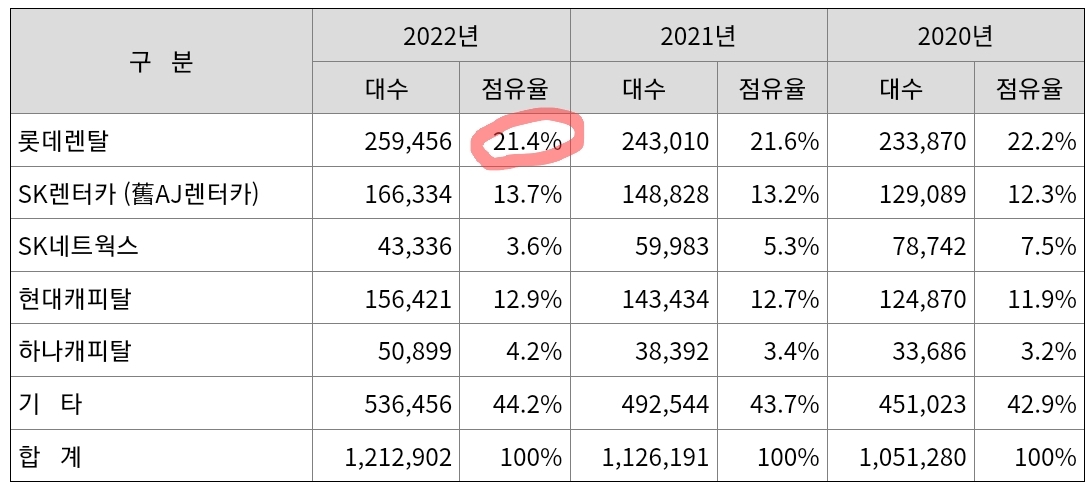 연구실적으로 보는 롯데렌탈의 현 주소 :