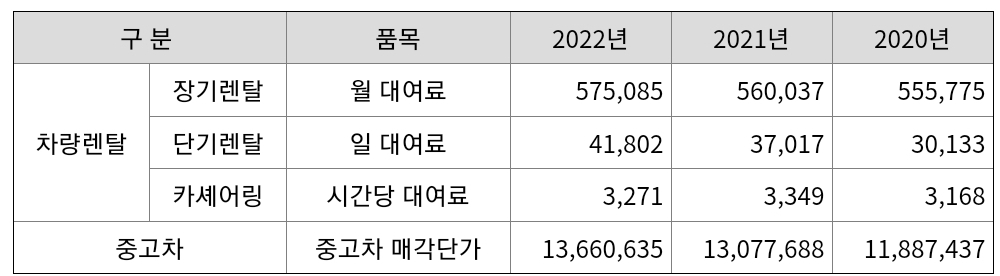 · 중고차매각 : 동사가 소유한 중고차 경매장을 통해 주로 매각 진행