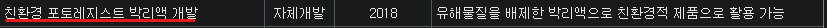 앞서, 박리액(Stripper)는 노광공정에서 회로가 새겨지고 난 후 나머지 PR를 제거하는 물질이라고 했죠. 최근들어 친환경 이슈가 불거지다보니 박리액을 만드는 원재료도 친환경적으로 만들려고하는 노력이 동사에게서 보입니다.
