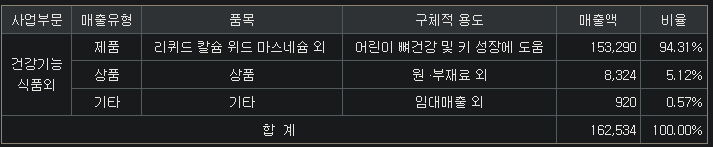 건강기능식품 OEM/ODM(95%), 원료(5%) / 주요고객사 : By-Health(중국M/S 1위), Swisse(4위) / 생산공장 : 국내, 미국, 호주
