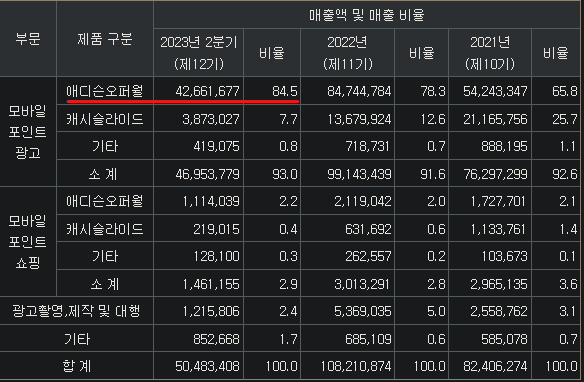 모바일포인트광고(93%), 모바일포인트쇼핑(3%), 광고대행(3%)
