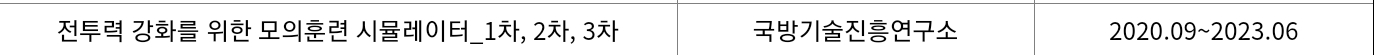 아래 R&D 내역은 정부과제로 참여하는 것인데요. 정부차원에서 하는 R&D는 대부분 공공성을 띠는 경우가 많죠. 국방 부문이 가장 대표적이에요. 스코넥은 정부과제로 군사 모의훈련VR 콘텐츠를 만드는 작업을 3년간 한 것으로 나와있어요.