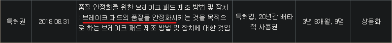 무엇보다 브레이크 마찰재의 가장 큰 중요한 요소는 안전이겠죠. 밑에 KB오토시스의 특허기록을 보면, 브레이크 패드 품질의 안정화를 위해 R&D 투자를 한 것을 확인할 수 있습니다.