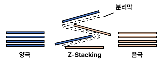 예를 들면, 파우치형 배터리 같은 경우는 Z-stacking 방식으로 조립을 하는데요. 아래 그림을 보면 더 이해하기 쉬울거에요. 만일, 양극이 살짝이라도 어긋나있으면, 배터리 성능이 현저히 떨어질 것이고 나중에 차량에 부착할 때, 배터리케이스에 알맞게 들어가지도 않을 것이에요. 그래서, Cell들이 잘 배치(Alignment)가 되었는지를 광학적으로 검사를 합니다.