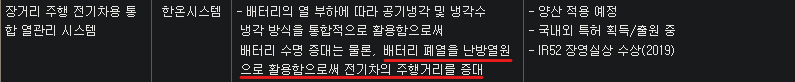 특히, 한온시스템은 기존 내연기관차 뿐만 아니라 전기차향 공조시스템을 꾸준히 개발하고 있습니다. 기존 내연기관차에서는 엔진에서 발생하는 열을 차량 난방으로 쓰는 열난방장치를 납품을 주로 했고요. 전기차향으로는 배터리에서 나오는 열을 가지고 난방시스템을 공급하고 있습니다.