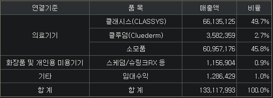 미용의료기기(50%, HIFU=Hight Intensity Focused Ultrasound) 소모품(46%)