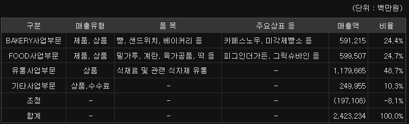 우선, SPC삼립이 무슨 사업들을 하는지부터 볼게요. 크게 3가지로 나뉩니다.