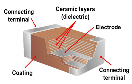 MLCC(Multi Layer Ceramic Capacitor) : 전하를 저장하는 '댐'역할 > 세라믹-전극(니켈,구리)-세라믹-전극····