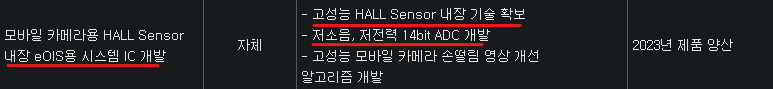 동운아나텍은 카메라모듈에 들어가는 AF, OIS Driver IC를 공급한다고 했죠. 특히, 최근 R&D를 보면, OIS용 HALL Sensor 기술을 확보했다고 나와있는데요. Hall Sensor에서 Hall은 자기장 근처에는 전류가 흐른다는 것을 발견한 Edwin Hall의 이름을 딴 것이고요. OIS는 사진, 영상을 촬영할 때, 이미지의 흔들림을 보정해주는 것이다 보니 주변 물질의 변화에 의한 관찰이 굉장히 중요합니다. HALL Sensor는 주변 자기장에 따라 전류의 흐름변화를 측정하여 '위치 변화'를 OIS IC에 알려주죠. 말 그대로 'Sensor'이니깐요.