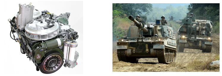 · 방산부품 : 자동변속기(엔진출력조절 > 속도, 토크 컨트롤), 무기(박격포, 자동포, 기관총)