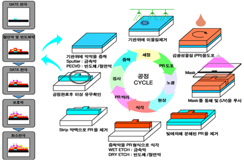 · 디스플레이 장비 : Cleaner(산화막, 이온, 불순물제거), Stripper(감광액 제거), Etcher(산화막제거)