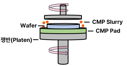 반도체의 Aspect Ratio(가로 대비 세로비율)가 커지면서, CMP 공정의 중요성이 굉장히 커졌어요. 특히, TSMC의 CoWoS 공정에서 HBM안에서 DRAM을 쌓아올릴 때, CMP공정이 필수이죠. CMP는 Chemical Mechanical Polishing의 약자인데요. 반도체 증착공정 후 구리도금액을 입히고 다시 칩을 쌓아올리는데, 구리도금액이 평탄화 되어있지 않으면, 쌓을 수록 비틀어져서 값비싼 칩이 무너지게 됩니다. 그래서, 구리도금액을 평탄화하는 작업이 중요하고, CMP 공정이 이러한 역할을 해요.