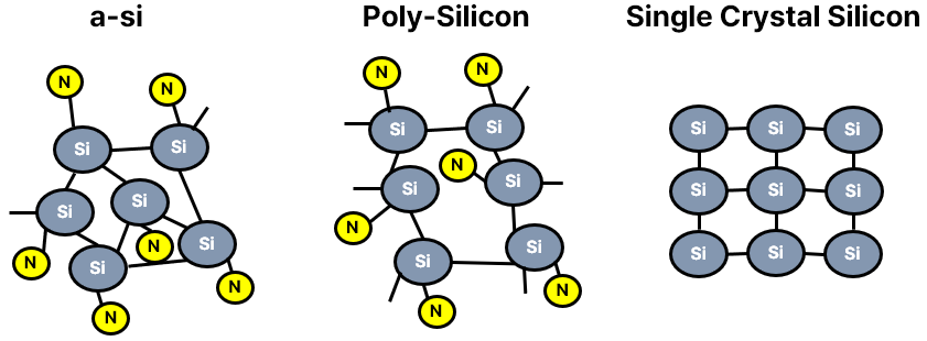 트랜지스터의 구성은 소스(Source)-게이트(Gate)-드레인(Drain)으로 이루어져 있는데요. 'Source = 전류공급, Gate = 전압 인가하여 채널형성, Drain = 전류 출구' 정리할 수 있습니다. 디스플레이에 들어가는 TFT는 종류가 3가지가 있는데요. 분자구조에 따라서 a-si(비정질) TFT, Oxide TFT, LTPS TFT로 나뉘어요. 여기서, a-si, Oxide, LTPS의 역할은 결국 소스에서 들어온 전류가 얼마나 잘 흘러가게 채널을 형성하느냐인 것이죠. 그러면, 도로가 혼잡한 것보다는 균일하게 되어잇는 것이 전류가 흐르는데 원할하겠죠? LTPS TFT가 가장 실리콘 배열이 가장 질서정연합니다. 그래서, OLED 같이 전류의 흐름이 빨라야 하는 곳에 대부분 쓰이죠.