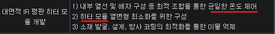 동사의 열처리장비 핵심은 말 그대로 '열처리'이겠죠. 열처리장비에는 히터모듈들이 들어가 있어요. 소프트웨어에 의해 명령을 받으면, 히터들이 동작을해 온도를 높이는 것이죠. 이때, 히터 입장에서도 자신의 몸을 지켜야합니다. 어떻게 보면, 직접 열을 내는 곳이니 가장 열에 취약할 수 있어요. 열에 의한 변형을 최소화하기 위해 R&D한 것을 알 수 있어요.