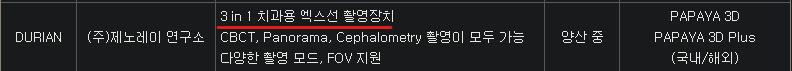 덴탈용 X-ray장비는 대부분이 개인치과의원들이 주요 고객사에요. 개인치과의원은 Turn-key로 장비를 할인된 가격으로 구매하기를 원해요. 수요자가 그걸 원하니 동사는 그렇게 판매전략을 세워야겠죠. 그래서, 하나의 X-ray장비로 CBCT(원뿔형빔으로 3D이미지), Panorama(U자 구강구조 펼쳐봄), Cephalometry(얼굴부위 골격형태 측청)들을 모두 할 수 있는 토탈솔루션을 시장에 출시했어요.