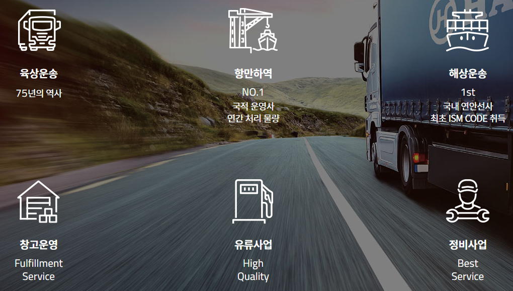 · 물류 : 트럭&철도운송, 항만하역, W&D, 해상운송