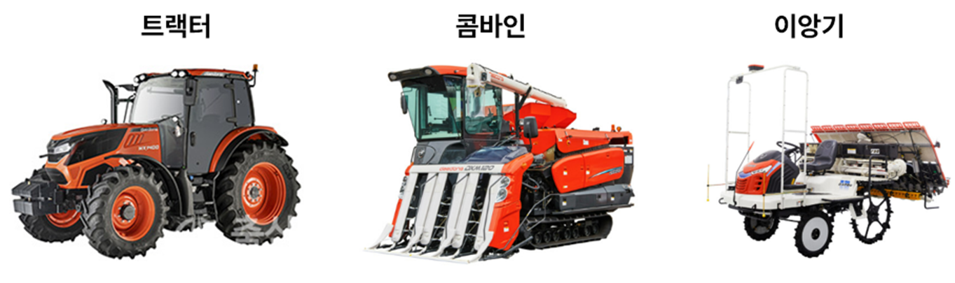 1. 농기계 : 트랙터, 콤바인, 이앙기