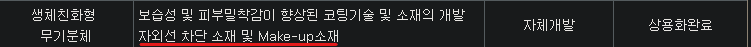 3. MPC유도체 : 인간의 세포막과 유사한 고분자 화학물질 > 사용처 : 화장품, 임플란트, 혈관 스텐트, 인공 렌즈, 섬유소재