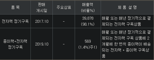 전자책구독(98%), 전자책+종이책구독(2%) / 모회사 : 지니뮤직(KT계열)