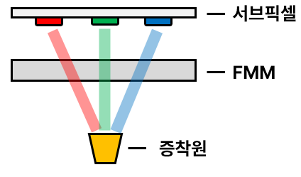 1. 증착마스크 : 유기물원을 통과시켜 서브픽셀에 증착