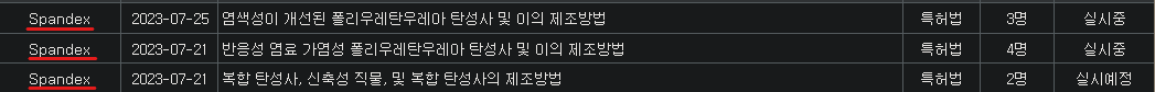 요가복, 트레이닝복 등 소비자들이 편안한 소재의 옷을 찾기 시작하자 신축성, 탄력성이 우수한 스판덱스의 수요가 증가하고 있어요. 다만, 수요가 증가하는 만큼 스판덱스를 판매하려는 공급도 늘어나고 있어요. 효성티앤씨는 차별화를 두기 위해서 스판덱스 소재에 폴리우레탄 같은 신축성 소재를 넣어서 제조하는 연구를 하고 있는 것을 확인할 수 있어요.