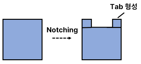노칭(Notching, 레이저)장비 : 전극을 셀규격에 맞게 컷팅 + 탭(Tab) 홈 파내기