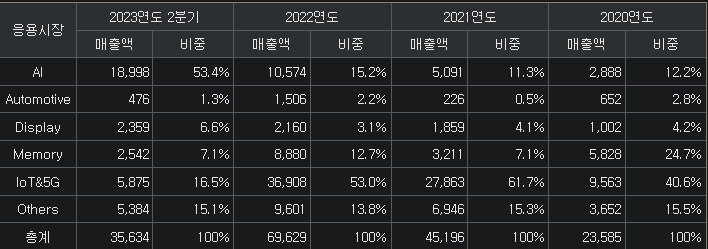 디자인하우스(100%, AI 53%, IoT%5G 16%, Memory IC 7%, Display 6%, Automotive 1%, Others 15%) / 경쟁력 : TSMC 공식파트너 / R&D : 시스템반도체 IP
