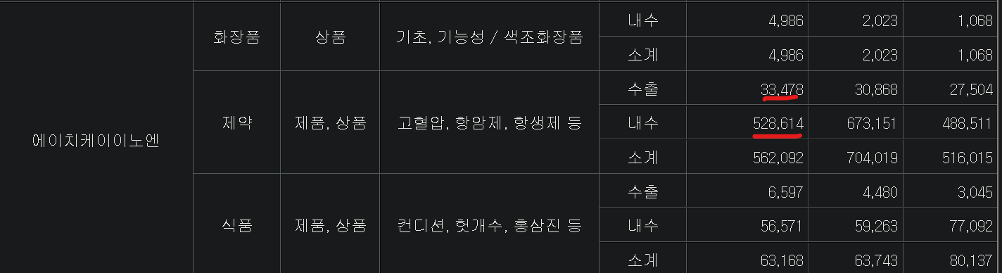 이러한 R&D투자는 다른 사업분야에 뻗어나가게 해줍니다. 결국, 화장품도 화학을 다루는 것이죠. 그러다보니, 건강기능식품, 의약품, 그리고 식품과학까지 화학을 기본상식으로 하는 이러한 분야들도 한국콜마는 하고있습니다. 증거로 자회사 HK이노엔은 전문의약품, H&B제품을 전세계적으로 선보이고있죠.