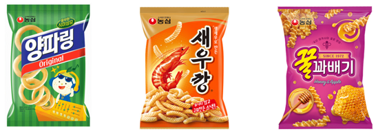 농심의 스낵류는 양파링, 새우깡, 꿀꽈배기 등이 있어요.