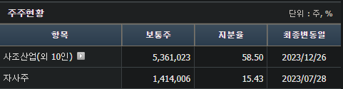 종합식품(80%, 부산어묵, 해표식용유, 맛살, 명태, 대구), 축산(16%, 육계, 양돈), 원양어업(3%, 거리 '원' for 참치, 명태, 대구) / 모회사 : 사조그룹(원양어업)