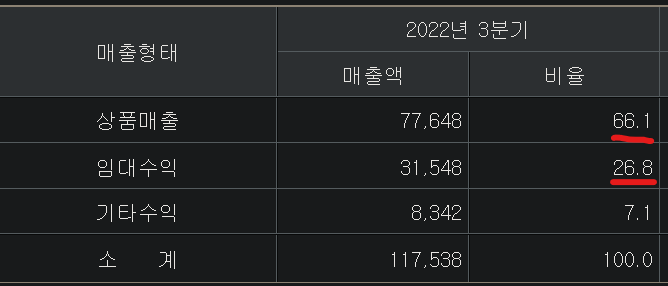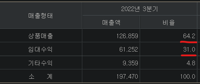 다만, 임대수익은 임대료를 내고 판매수수료는 내지않는 형태에요. 사실, 백화점임대료도 굉장히 비싸기 때문에, 입점업체들 입장에서는 판매할 때마다 내는 판매수수료가 더 낫다는 것이 매출액 비중에서도 보여주는 것 같습니다.
