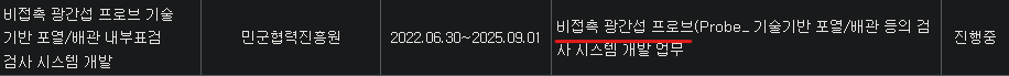 제노코는 군 전술정보통신체계향으로 광케이블도 납품을 한다고 했죠. 광케이블은 전기신호를 보내는 역할을 하는데요. 만일, 광케이블의 문제가 생긴다면, 신호가 잘못전달되어 소통의 문제가 일어날 수도 있겠죠. 그래서, 광케이블도 검사가 필요한데, 직접 열어보기에는 기술적, 비용적 문제가 있어요. 그래서, 동사는 비접촉식 프로브를 R&D 중에 있는데요. 말 그대로, 접촉하지 않고 프로브(Probe, 검사기기)로 검사를 하는 것을 의미해요.
