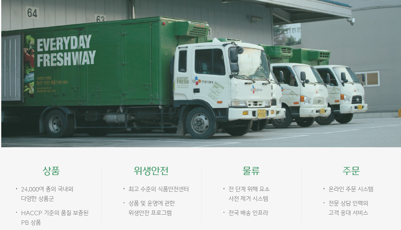 (소득이 올라가고 건강이 중요시되면서 위생에 신경을 많이쓰지 않는가?) 말했다시피 현재 시장의 90%점유하고 있는 중소 유통상들에게는상품들을 신선하고 안전하게 전달할 충분한 인프라가 갖춰져있지 않다.