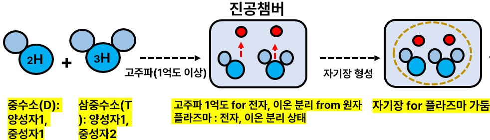 핵융합 원리 : 초고주파(1억도 이상) 가열 for 플라즈마 형성 > 자기장 생성 for 플라즈마 가둠