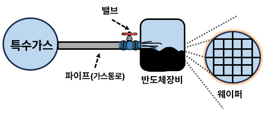 C.C.S.S는 Chemical Central Supply System의 약자인데요. 이름 그대로 화학약품(Chemical)을 공급(Supply)하는 시스템(System)이라고 이해하면 돼요. 가스는 파이프(Pipe)를 통해서 흘러 들어가죠. 아래 그림을 참고하면, 이해하기 쉬울 거에요.