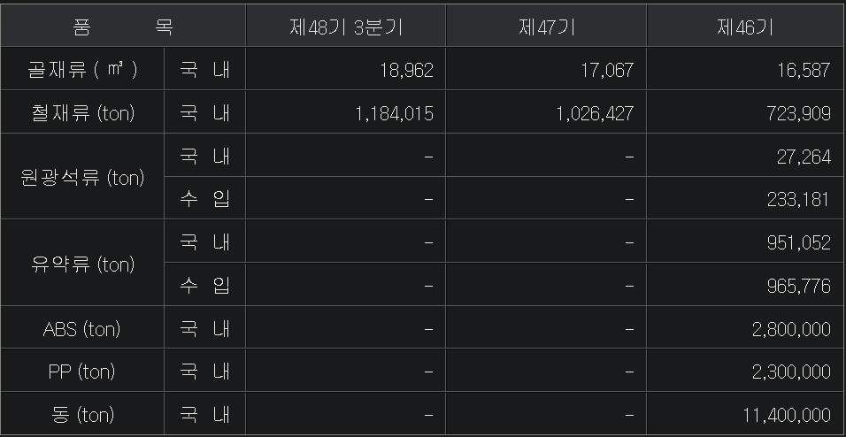 건자재및가구 / 시멘트및레미콘 / 국내건설