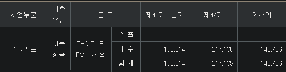 3. 콘크리트사업, 건축&주택 사업 내수 100% / 환경 내수 98.8%, 수출 1.2% :