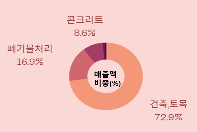 2. 사업별 매출비중(22.3분기) : 건축, 토목 74.39% > 폐기물처리 17.27% > 콘크리트 8.76% > 임대, 서비스 1.06% > 해상화물운송 0.63%