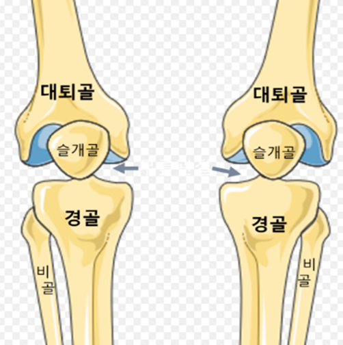 * 슬개골 : '무릎 슬(膝)', '덮 개(蓋)', '뼈 골(骨)' > 뜻 : 무릎덮개 뼈