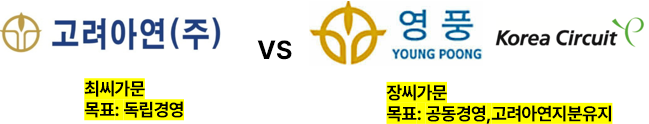 - 현 상황 : 오피스분리(기존 공유오피스사용), 영업분리(공동구매, 영업분리), 고려아연지분매입(최씨가문 5: 장씨가문5 > 추가매입 : 고려아연지분 차지하기 위한 장내매입)